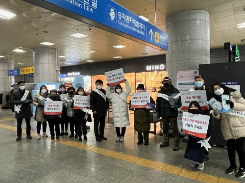 ÃÑ 10¸íÀÇ ¾çÁֽùÎÀ¸·Î ±¸¼ºµÈ ¹Ì¼¼¸ÕÁö Àú°¨ ½Ã¹ÎÂü¿©´ÜÀº ¹Ì¼¼¸ÕÁö ÁÙÀÌ´Â »ýȰ¼öÄ¢ÀÌ ÀûÈù ¹Ì¼¼¸ÕÁö Â÷´Ü ¸¶½ºÅ©¸¦ ½Ã¹Îµé¿¡°Ô ¹èºÎÇϸç Ä·ÆäÀΠȰµ¿¿¡ ¾ÕÀå¼¹´Ù.