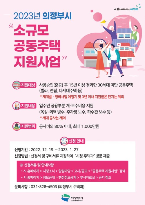 ÀÇÁ¤ºÎ½Ã´Â ³ëÈÄ °øµ¿ÁÖÅÃÀÇ °ü¸®ºñ¿ë ºÎ´ã ¿ÏÈ¿Í ÁְŠȯ°æ °³¼±À» À§ÇØ ³ëÈÄ ºÎ´ë․º¹¸®½Ã¼³ °³·º¸¼ö¿¡ ÇÊ¿äÇÑ ºñ¿ëÀÇ ÀϺθ¦ Áö¿øÇÏ´Â ‘2023³â °øµ¿ÁÖÅà Áö¿ø»ç¾÷’À» ÃßÁøÇÑ´Ù.
