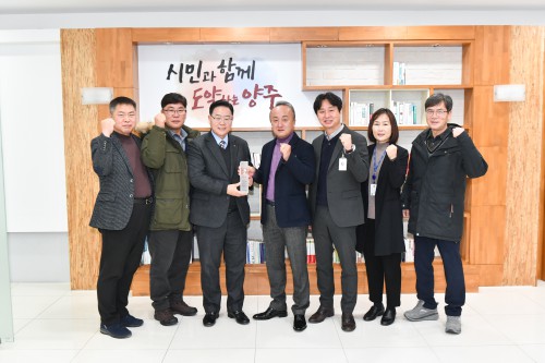 ¾çÁֽà »êºÏ µµ½ÃÀç»ý ÁÖ¹ÎÇùÀÇü(ȸÀå Àå°æº¹)´Â 21ÀÏ ¾çÁÖ½Ãû ½ÃÀå½Ç¿¡¼ °¼öÇö ¾çÁÖ½ÃÀå¿¡°Ô ±¹ÅäºÎ ÁÖ°ü µµ½ÃÀç»ý»ç¾÷ °ø¸ð ¼±Á¤¿¡ ´ëÇÑ °¨»çÆÐ¸¦ Àü´ÞÇß´Ù.