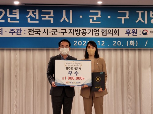 ¾çÁÖµµ½Ã°ø»ç(»çÀå ÀÌÈï±Ô)°¡ Áö³ 20ÀÏ Á¦ÁÖ ½ãÈ£ÅÚ¿¡¼ ¿¸° '2022³â Àü°ø ½Ã·±º·±¸ Áö¹æ°ø±â¾÷ ¿ì¼ö»ç·Ê °æÁø´ëȸ' ¿¡¼ ¿ì¼ö»óÀ» ¼ö»óÇß´Ù.