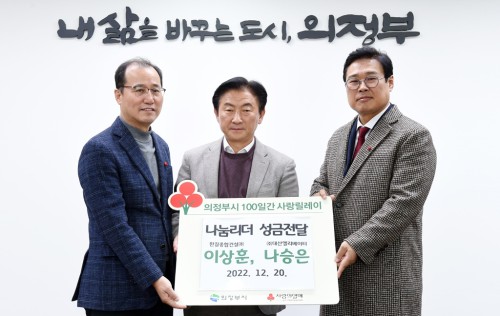 À̹ø ¿¬¸»À» ¸Â¾Æ »ó°øÈ¸´Â ¼º±Ý 500¸¸ ¿øÀ» ÀÇÁ¤ºÎ½Ã¿¡ ±âŹÇÏ´Â ÇÑÆí, ÇѱæÁ¾ÇհǼ³(ÁÖ) ÀÌ»óÈÆ ´ëÇ¥¿Í ¢ß´ë»ê¿¤¸®º£ÀÌÅÍ ³ª½ÂÀº ´ëÇ¥°¡ °³ÀÎ ÀÚ°ÝÀ¸·Î °¢°¢ ¼º±Ý 100¸¸ ¿øÀ» ±âÅ¹ÇØ µû¶æÇÑ ¿ÂÁ¤ÀÇ ¼Õ±æÀ» ³ª´©¾ú´Ù.