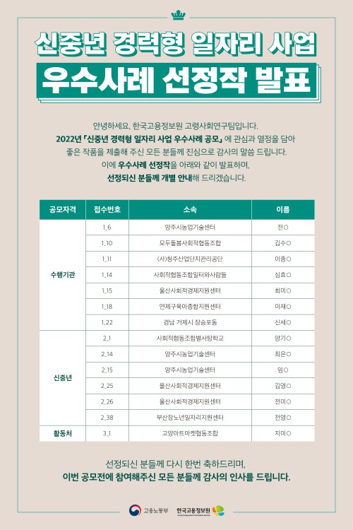 ¾çÁÖ½Ã(½ÃÀå °¼öÇö)´Â °í¿ë³ëµ¿ºÎ ÁÖ°ü ‘2022³â ½ÅÁ߳⠰æ·ÂÇü ÀÏÀÚ¸®»ç¾÷ ¿ì¼ö»ç·Ê °ø¸ðÀü’¿¡¼ µµ½Ã³ó¾÷¸Å´ÏÀú »ç¾÷ÀÌ ¼öÇà±â°ü·½ÅÁ߳⠰³ÀÎ ºÎ¹® ¿ì¼ö»ç·Ê·Î ¼±Á¤µÇ´Â Äè°Å¸¦ ÀÌ·ð´Ù.