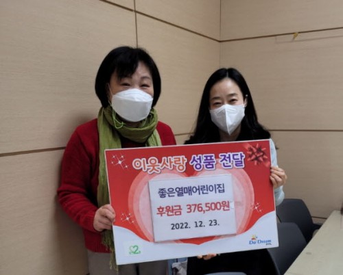 µ¿µÎõ½Ã »ý¿¬2µ¿ ÇàÁ¤º¹Áö¼¾ÅÍ´Â Áö³ 23ÀÏ, ÁÁÀº¿¸Å¾î¸°ÀÌÁý(¿øÀå Á¶ÅÂÈñ)¿¡¼ ¾î·Á¿î ÀÌ¿ôÀ» µ½°í ½Í´Ù¸ç ¼º±Ý 376,500¿øÀ» ÇàÁ¤º¹Áö¼¾ÅÍ¿¡ ±âŹÇß´Ù.