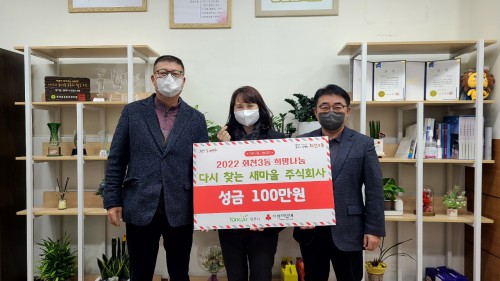 ¾çÁֽà ȸõ3µ¿ ÇàÁ¤º¹Áö¼¾ÅÍ(µ¿Àå ±è±Ý¼÷)´Â Áö³ 27ÀÏ ‘´Ù½Ãã´Â »õ¸¶À» ÁÖ½Äȸ»ç(´ëÇ¥ ¹æÃ»¼®)’¿¡¼ ¾î·Á¿î ÀÌ¿ôÀ» À§ÇØ ½á´Þ¶ó¸é ¼º±Ý 100¸¸¿øÀ» ±âºÎÇß´Ù°í ¹àÇû´Ù.