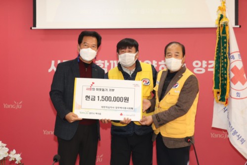 ´ëÇÑÀû½ÊÀÚ»ç ¾çÁÖ ¹é¼®ºÀ»çȸ(ȸÀå ±ÇÅÂÁØ)´Â Áö³ 28ÀÏ ¹é¼®À¾ ÇàÁ¤º¹Áö¼¾ÅÍ(À¾Àå °íÀ±±¸)¸¦ ¹æ¹®ÇØ °ü³» Àú¼ÒµæÃþ À§±â°¡±¸¸¦ À§ÇÑ ¼º±Ý 150¸¸¿øÀ» ±âºÎÇß´Ù.