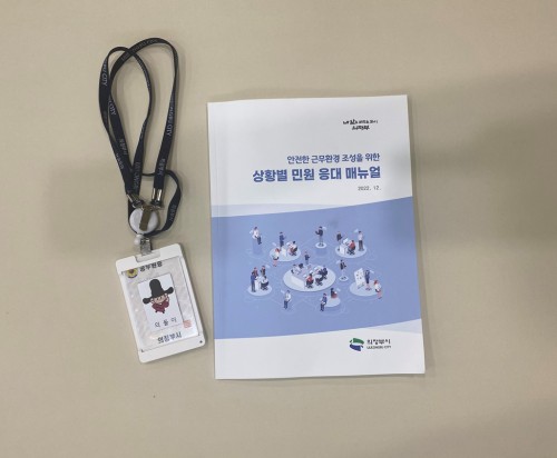 ÇöÀç ½Ãû ¹× µ¿ Áֹμ¾ÅÍ¿¡´Â ÀüÈ ÀÚµ¿ ³ìÀ½ ¹× CCTV ¼³Ä¡, û¿ø°æÂû ¹èÄ¡ µîÀÇ Á¦µµ°¡ ÀÌ¹Ì ½ÃÇàµÇ°í ÀÖÁö¸¸, ÃÖ±Ù ´õ¿í ´Ã¾î°¡´Â ¹Î¿øÀÎÀÇ Æø¾ð·ÆøÇà µî °ø¹«¿ø ÇÇÇØ »ç°Ç¿¡ ´ëÀÀÇÏ¿© ½Ã¿¡¼´Â ¡¸ÀÇÁ¤ºÎ½Ã ¹Î¿øÃ³¸® ´ã´çÀÚ º¸È£ ¹× Áö¿ø¿¡ °üÇÑ Á¶·Ê¡¹ ¹× ¡¸¹Î¿ø ó¸® ´ã´çÀÚ ÈÞ´ë¿ë º¸È£Àåºñ ¿î¿µ Áöħ¡¹À» Á¦Á¤Çß´Ù. ¾Æ¿ï·¯ ÇöÀå¿¡¼ ¹ß»ýÇÒ ¼ö Àִ ƯÀ̹οø¿¡ ´ëÇÑ °³ÀÎÀû·Á¶Á÷Àû ´ëÀÀ´É·ÂÀ» °ÈÇϱâ À§ÇØ »óȲº° ¹Î¿ø ÀÀ´ë ¸Å´º¾óµµ ¹èºÎÇß´Ù.