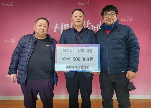 ¾çÁֽà ¾çÁÖ1µ¿ ÅëÀåÇùÀÇȸ(ÇùÀÇȸÀå À̸íÈÆ)´Â Áö³ 29ÀÏ ¾çÁÖ1µ¿ ÇàÁ¤º¹Áö¼¾ÅÍ(µ¿Àå ±è½Â±Ù)¸¦ ¹æ¹®ÇØ ¿ÂǰķÆäÀÎ ¼º±Ý 50¸¸¿øÀ» ±âºÎÇß´Ù.