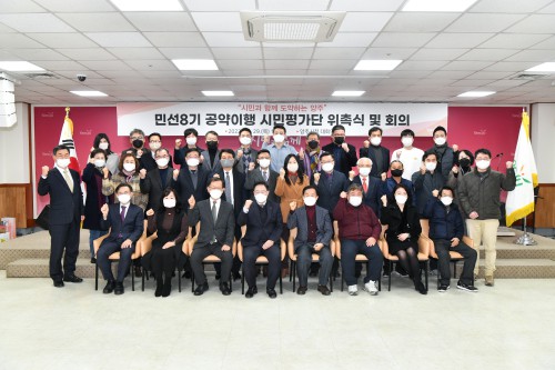 ¾çÁÖ½Ã(½ÃÀå °¼öÇö)´Â Áö³ 12¿ù 29ÀÏ ½Ãû ´ëȸÀǽǿ¡¼ ¹Î¼± 8±â °ø¾à»ç¾÷ Æò°¡¸¦ À§ÇÑ ½Ã¹Î Æò°¡´Ü 34¸íÀ» À§ÃËÇϰí Á¦1Â÷ ȸÀǸ¦ °³ÃÖÇß´Ù.