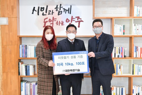¾çÁÖ½Ã(½ÃÀå °¼öÇö)´Â Áö³ 12¿ù 29ÀÏ ¢ß´ëÇÑÃø·®±â¼ú(´ëÇ¥ ³²¿Á¿ì)¿¡¼ ½ÃûÀ» ¹æ¹®ÇØ Àú¼ÒµæÃþÀ» µ½±â À§ÇØ ¹é¹Ì(10kg) 100Æ÷¸¦ ±âºÎÇß´Ù°í ¹àÇû´Ù.