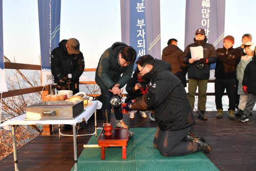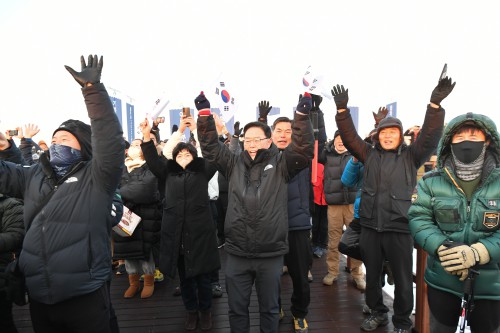 °¼öÇö ½ÃÀåÀº À̸¥ »õº®ºÎÅÍ ÇØ¸ÂÀ̰´µé°ú ÇÔ²² Á¤»ó¿¡ ¿Ã¶ó ºÓ°Ô ¶°¿À¸¥ °è¹¦³â ù ÀÏÃâÀ» ¹Ù¶óº¸¸ç ½Å³â ±â¿øÁ¦¸¦ ¿Ã¸®°í ¾çÁÖ ¹ßÀü°ú ½Ã¹Î ¾È³çÀ» ±â¿øÇÏ´Â »õÇØÀλ縦 ÀüÇß´Ù.