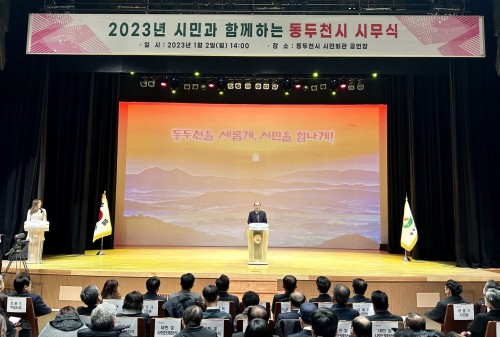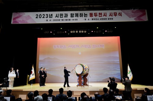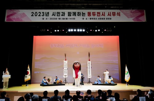 µ¿µÎõ½Ã(½ÃÀå ¹ÚÇü´ö)´Â 2023³â °è¹¦³â »õÇØ¸¦ ½ÃÀÛÇÏ´Â ½ÃÁ¤¾÷¹« ½Ã¹«½ÄÀ» Áö³ 2ÀÏ ½Ã¹Îȸ°ü °ø¿¬Àå¿¡¼ ½Ã¹Îµé°ú ÇÔ²² °³ÃÖÇß´Ù.