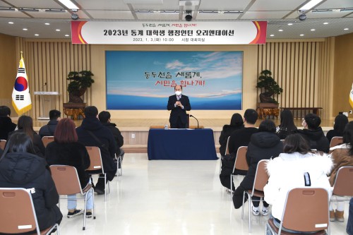 µ¿µÎõ½Ã´Â Áö³ 3ÀÏ ½Ãû ´ëȸÀǽǿ¡¼ 2023³â µ¿°è ´ëÇлý ÇàÁ¤ÀÎÅÏ ¿À¸®¿£Å×À̼ÇÀ» °³ÃÖÇß´Ù.