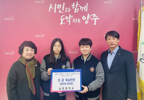 ¾çÁֽà ³²¹®ÁßÇб³(±³Àå ÀÌÈñºó)´Â Áö³ 4ÀÏ ³²¸é ÇàÁ¤º¹Áö¼¾ÅÍ(¸éÀå °¼®¿ø)¸¦ ¹æ¹®ÇØ °ü³» ¾î·Á¿î ÀÌ¿ôÀ» ½á´Þ¶ó¸ç ¼º±Ý 60¸¸¿øÀ» ±âºÎÇß´Ù.