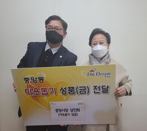 µ¿µÎõ½Ã Áß¾Ó½ÃÀå »óÀÎȸ(ȸÀå ¿ÀÇϼø)´Â Áö³ 9ÀÏ ¾î·Á¿î ÀÌ¿ôÀ» µ½´Â Ȱµ¿¿¡ ½á ´Þ¶ó¸ç Áß¾Óµ¿ ÇàÁ¤º¹Áö¼¾ÅÍ¿¡ ÀÌ¿ôµ½±â ¼º±ÝÀ» ±âŹÇß´Ù.