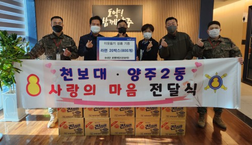 À°±º Á¦8»ç´Ü Æ÷º´¿©´Ü(õº¸´ë)Àº Áö³ 18ÀÏ ¾çÁÖ2µ¿ ÇàÁ¤º¹Áö¼¾ÅÍ¿¡ ¹æ¹®ÇØ ¶ó¸é 20¹Ú½º(¶ó¸é 800°³)¸¦ ±âºÎÇß´Ù.