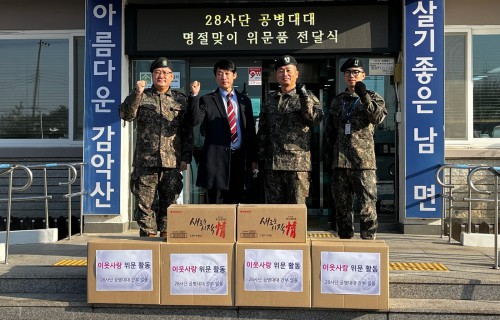 ¾çÁֽà ³²¸é(¸éÀå °¼®¿ø)Àº Áö³ 18ÀÏ 28»ç´Ü °øº´´ë´ë(´ë´ëÀå ¹é¿ëÇÏ)¿¡¼ ´Ù°¡¿À´Â ¼³ ¸íÀýÀ» ¸Â¾Æ ÂüÀü¿ë»ç 2°¡±¸¿¡ »ýÇÊǰ°ú °Ç°¿ëǰÀ» Àü´ÞÇß´Ù°í ¹àÇû´Ù.