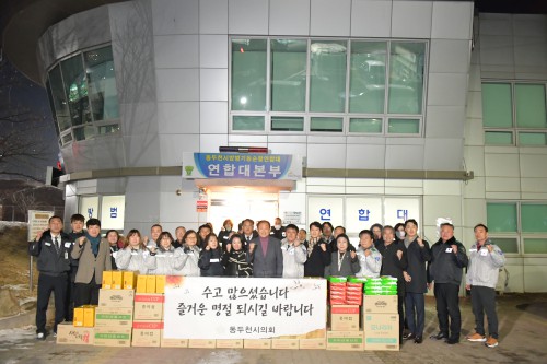 µ¿µÎõ½ÃÀÇȸ(ÀÇÀå ±è½ÂÈ£)´Â Áö³ 18ÀÏ ¼³ ¸íÀýÀ» ¸Â¾Æ ¹æ¹ü±âµ¿¼øÂû¿¬ÇÕ´ë(´ëÀå ±ÇÅ¿¬)¿¡ À§¹® ¹°Ç°À» Àü´ÞÇϰí, Áö¿ª Ä¡¾ÈÀ¯Áö¸¦ À§ÇØ Èû¾²´Â ¹æ¹ü´ë¿øµéÀ» °Ý·ÁÇß´Ù.
