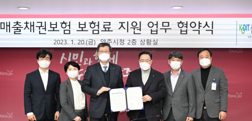 ¾çÁÖ½Ã(½ÃÀå °¼öÇö)´Â 20ÀÏ ½Ãû »óȲ½Ç¿¡¼ ½Å¿ëº¸Áõ±â±Ý(ÀÌ»çÀå ÃÖ¿ø¸ñ)°ú Áß¼Ò±â¾÷ ¸ÅÃâä±Çº¸Çè º¸Çè·á Áö¿øÀ» À§ÇÑ ¾÷¹«Çù¾à¼¿¡ °øµ¿ ¼¸íÇß´Ù.