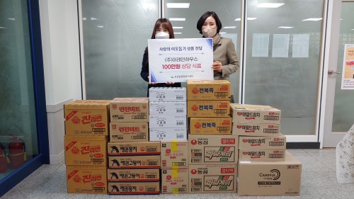 µ¿µÎõ½Ã ¢ßÀÌ·¹ÀÎÇϿ콺(´ëÇ¥ ±èº¸¶ó)´Â Áö³ 20ÀÏ ¾î·Á¿òÀ» °Þ´Â °¡±¸¸¦ À§ÇØ ½á´Þ¶ó¸ç 100¸¸¿ø »ó´çÀÇ ½Äǰ(ÂüÄ¡, ÇÜ, °íµî¾î, ²ÇÄ¡, ¶ó¸é µî)À» º¸»êµ¿ ÇàÁ¤º¹Áö¼¾ÅÍ¿¡ Àü´ÞÇß´Ù.