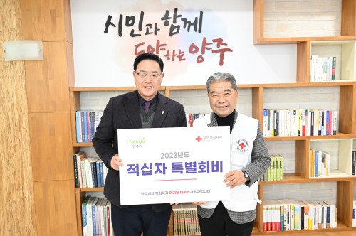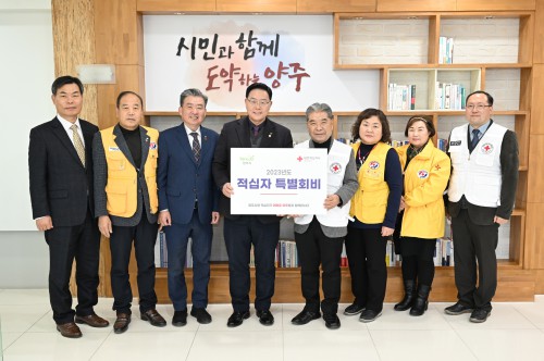 ¾çÁÖ½Ã(½ÃÀå °¼öÇö)´Â 25ÀÏ ½Ãû ½ÃÀå½Ç¿¡¼ ´ëÇÑÀû½ÊÀÚ»ç °æ±âµµÁö»ç(ȸÀå ÀÌÀçÁ¤)¿¡ 2023³â Àû½ÊÀÚ Æ¯º°È¸ºñ¸¦ Àü´ÞÇÏ°í ½Ã¹ÎµéÀÇ ÀÚ¹ßÀûÀÎ ³ª´® µ¿ÂüÀ» ´çºÎÇß´Ù.