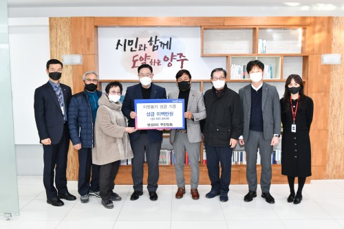 ¾çÁÖ½Ã(½ÃÀå °¼öÇö)´Â Áö³ 27ÀÏ ¹é¼®À¾ ¹æ¼º2¸®(ÀÌÀå ±è¼º±Ô) ÁÖ¹ÎÀϵ¿ÀÌ ½ÃûÀ» ¹æ¹®ÇØ Àú¼ÒµæÃþÀ» µ½±â À§ÇØ ¼º±Ý 200¸¸¿øÀ» ±âºÎÇß´Ù°í ¹àÇû´Ù.
