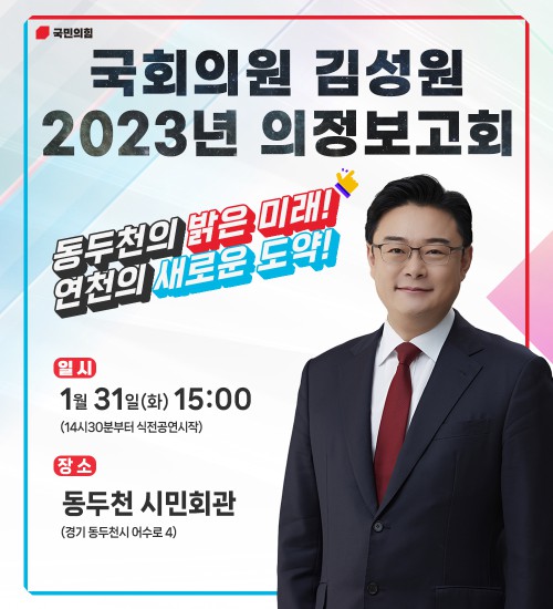±¹¹ÎÀÇÈû ±è¼º¿ø ±¹È¸ÀÇ¿ø(Àç¼±, µ¿µÎõ·¿¬Ãµ)Àº 1¿ù 31ÀÏ ¿ÀÈÄ 3½Ã µ¿µÎõ ½Ã¹Îȸ°ü¿¡¼ ÀÇÁ¤º¸°íȸ¸¦ °³ÃÖÇÑ´Ù.