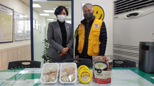 ´ëÇÑÀû½ÊÀÚ»ç µ¿µÎõÁö±¸ ¿£Á©ºÀ»çȸ(ȸÀå ÇϹ̼ø)´Â Áö³ 1¿ù 30ÀÏ º¸»êµ¿ ÂøÇѽĴçÀÎ ¿¬Ãµ¸¸µÎ(´ëÇ¥ ½Å¹Ì¿µ)¿¡¼ ÈÄ¿øÇÑ Âð¸¸µÎ¿Í ¢ßÀÌ·¹ÀÎÇϿ콺¿¡¼ ÈÄ¿øÇÑ °£Æí½ÄǰÀ» Ãë¾à°èÃþ °¡±¸¿¡ Àü´ÞÇÏ¸ç ¾ÈºÎ¸¦ »ìÆñ´Ù.