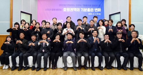 ÀÇÁ¤ºÎ½Ã(½ÃÀå ±èµ¿±Ù) È£¿ø2µ¿ÇàÁ¤º¹Áö¼¾ÅÍ(±Ç¿ª±¹Àå °íÇö¼÷)´Â 2¿ù 1ÀÏ Ã»»ç 4Ãþ ´ëȸÀǽǿ¡¼ ±èµ¿±Ù ½ÃÀåÀ» ºñ·ÔÇÑ ½ÃÀÇ¿ø, Áö¿ª ÁֹΠµî 100¿© ¸íÀÌ Âü¼®ÇÑ °¡¿îµ¥ 2023³â ¹Ì·¡°¡Ä¡ °øÀ¯ÀÇ Àå ‘½Ã¹Î°ú ÇÔ²² ¹Ù²Ù´Â È£¿ø±Ç¿ªÀÇ ±âºÐ ÁÁÀº º¯È’¸¦ °³ÃÖÇß´Ù.