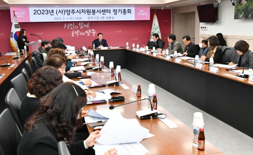 (»ç)¾çÁÖ½ÃÀÚ¿øºÀ»ç¼¾ÅÍ(¼¾ÅÍÀå ±è¿ëÈÆ)´Â Áö³ 1ÀÏ ½Ãû »óȲ½Ç¿¡¼ °¼öÇö ÀÌ»çÀå, ÀÌ»ç, ÀϹÝȸ¿ø µî 25¸íÀÌ Âü¼®ÇÑ °¡¿îµ¥ ‘2023³â ¾çÁÖ½ÃÀÚ¿øºÀ»ç¼¾ÅÍ Á¤±âÃÑȸ’¸¦ °³ÃÖÇß´Ù.