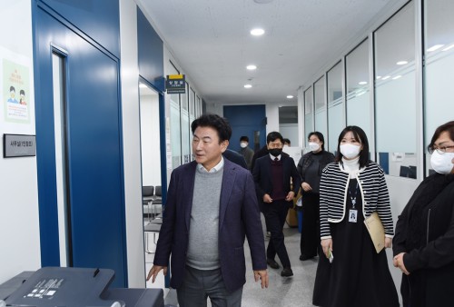 À̳¯ ±èµ¿±Ù ÀÇÁ¤ºÎ½ÃÀåÀº ÀÇÁ¤ºÎ½Ã Áß¼Ò±â¾÷ Áö¿ø¼¾ÅÍ ³» À§Ä¡ÇÑ 1ÀΠâÁ¶±â¾÷ Áö¿ø¼¾ÅÍ¿Í ÁßÀå³â ±â¼úâ¾÷¼¾ÅÍÀÇ »ç¾÷¼³¸í ¹× ¹Î¿ø ÇØ¼Ò¸¦ À§ÇÑ °ÇÀÇ»çÇ×À» ûÃëÇÏ°í ¼¾ÅÍ ³» ½Ã¼³À» µÑ·¯º¸¸ç ¹Î¿ø ó¸® ¿©ºÎ¸¦ È®ÀÎÇß´Ù.