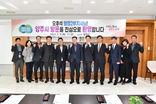 °¼öÇö ¾çÁÖ½ÃÀåÀÌ 9ÀÏ ¾çÁÖ½ÃûÀ» ¹æ¹®ÇÑ ¿ÀÈļ® °æ±âµµ ÇàÁ¤2ºÎÁö»ç¸¦ Á¢°ßÇÏ°í ¾çÁÖ¹ßÀüÀ» À§ÇÑ ÁÖ¿ä Çö¾È »çÇ×À» °ÇÀÇÇß´Ù.