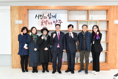 °¼öÇö ¾çÁÖ½ÃÀåÀº Áö³ 8ÀÏ ½Ãû ½ÃÀå½Ç¿¡¼ ¾çÁֽø³Àå¿íÁø¹Ì¼ú°ü°ú Çù¾àÀ» ¸Î°í ÀÖ´Â Àå¿íÁø¹Ì¼ú¹®ÈÀç´Ü ±èµ¿°Ç ÀÌ»çÀå, ÀåÁ¤¼ø‧Àå°æ¼ö ÀÌ»ç¿Í °£´ãȸ¸¦ °¡Á³´Ù.