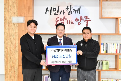 ¾çÁÖ½Ã(½ÃÀå °¼öÇö)¿¡ ¿ÂÁ¤ÀÇ ¼Õ±æÀÌ ÇÊ¿äÇÑ ÀÌ¿ôÀ» À§ÇØ ¾Æ¸§´Ù¿î ±âºÎÇà·ÄÀÌ À̾îÁö°í ÀÖ¾î Áö¿ª»çȸ¸¦ ÈÆÈÆÇÏ°Ô Çϰí ÀÖ´Ù.