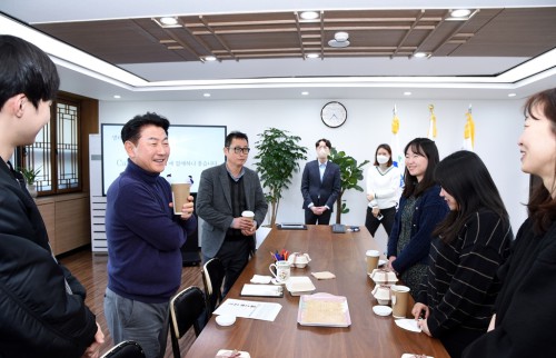 ÀÛ³â 12¿ù 23ÀϺÎÅÍ ¿ù 2ȸ Á÷¿øµéÀÇ ½ÅûÀ¸·Î ºÎ½ÃÀå°ú Á¡½ÉÀ» ¸Ô´Â ‘ºÎ½ÃÀå°ú ÇÔ²²ÇÏ´Â ºê¶ó¿î¹é ¹ÌÆÃ’ÀÌ Âü°¡ÀڷκÎÅÍ ÁÁÀº ¹ÝÀÀÀ» ¾ò°í ÀÖ´Â °¡¿îµ¥, 2¿ù 20ÀÏ¿¡´Â ½ÃÀå°ú Á÷¿øµéÀÇ »ó½Ã ¸¸³²À» Áö¿øÇÏ´Â ‘Ä«Æä ¹«Áö°³’ ¿î¿µÀ» ½ÃÀÛÇß´Ù.