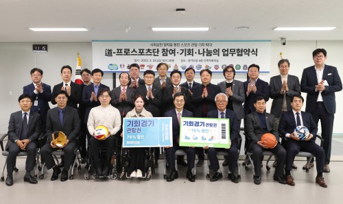 Çù¾à¿¡ µû¶ó °æ±âµµ¿Í ÇÁ·Î½ºÆ÷Ã÷´ÜÀº ¡ã½ºÆ÷Ã÷ °ü¶÷ ±âȸ È®´ë¸¦ À§ÇÑ »óÈ£ Çù·Â ¡ãÇÁ·Î½ºÆ÷Ã÷»ê¾÷ Ȱ¼ºÈ ¹× °ü¶÷°´ ÀÎÇÁ¶ó °³¼± ¡ã°¢Á¾ ¹Î°ü üÀ° Çù·Â »ç¾÷ ÃßÁø ¡ã»çȸ°øÇåÀ» ÅëÇÑ µµ¹Î ½ºÆ÷Ã÷ ±âº»±Ç Á¦°í¸¦ À§ÇØ »óÈ£ Çù·ÂÇϱâ·Î Çß´Ù.