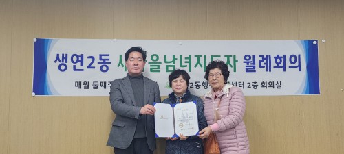 µ¿µÎõ½Ã »ý¿¬2µ¿ ÇàÁ¤º¹Áö¼¾ÅÍ´Â Áö³ 9ÀÏ »ý¿¬2µ¿ »õ¸¶À»ºÎ³àȸ ½Å±Ô À§¿ø¿¡ ´ëÇØ À§ÃËÀåÀ» ¼ö¿©Çß´Ù.