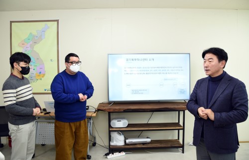 ±èµ¿±Ù ÀÇÁ¤ºÎ½ÃÀåÀº °æ±âºÏºÎÇϳª¼¾ÅÍ¿¡¼ ±Ù¹«ÇÏ´Â »ó´ã»ç¿Í Á¤Âø Áö¿ø ¾÷¹« ´ã´çÀÚµéÀ» °Ý·ÁÇÏ°í ½Ã¼³À» µÑ·¯ºÃ´Ù. ÀÌ¾î °ü°èÀÚµé°ú °£´ãȸ¸¦ ÇÏ°í °æ±âºÏºÎÇϳª¼¾ÅÍ ¼Ò°³¿Í ¾÷¹« µî ÇöÀåÀÇ ¸ñ¼Ò¸®µµ µé¾ú´Ù.