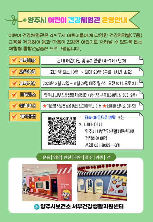 ¾çÁÖ½Ã(½ÃÀå °¼öÇö)´Â ½Ã¼³È¯°æ °³¼±À» ¸¶Ä¡°í »õ·Ó°Ô ´ÜÀåÇÑ ‘¾î¸°ÀÌ °Ç°Ã¼Çè°ü’À» ¿À´Â 22ÀϺÎÅÍ Àç°³°üÇØ ¿î¿µÇÑ´Ù°í ¹àÇû´Ù.