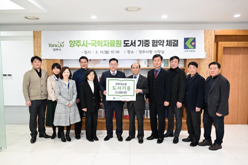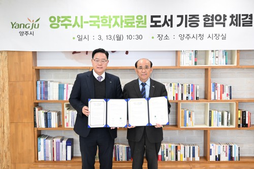 ¾çÁÖ½Ã(»çÀå °¼öÇö)°¡ Áö³ 13ÀÏ ½Ãû »óȲ½Ç¿¡¼ ¾çÁÖ½ÃÀÇ Àι® µ¶¼¹®È ¹ßÀüÀ» À§ÇØ ±¹ÇÐÀÚ·á¿ø(¿øÀå Á¤Âù¿ë)°ú Çмúµµ¼ ±âÁõ Çù¾à½ÄÀ» ü°áÇß´Ù.