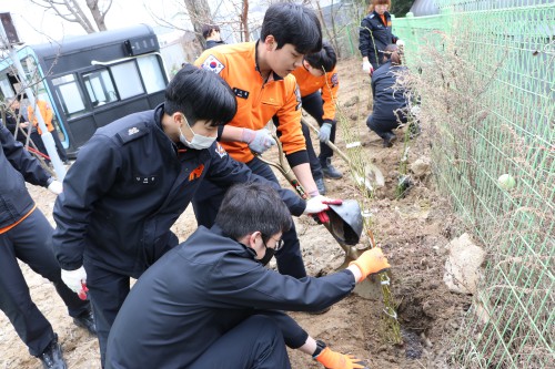 À̳¯ ¾çÁÖ¼Ò¹æ¼ ÈÄÁ¤¿¡´Â ³ÕÄðÀå¹Ì(½ºÄ®·¿, ¾ÈÁ©¶ó) ÃÑ 100ÁÖÀÇ Àå¹Ì°¡ ½É¾îÁ³´Ù. ¼Ò¹æ¼ Àü ºÎ¼´Â È´Ü Á¤ºñ¿Í û»ç ÁÖº¯ ÀâÃÊ Á¦°Å ¹× ȯ°æ Á¤µ·µµ °°ÀÌ ÁøÇàÇß´Ù.