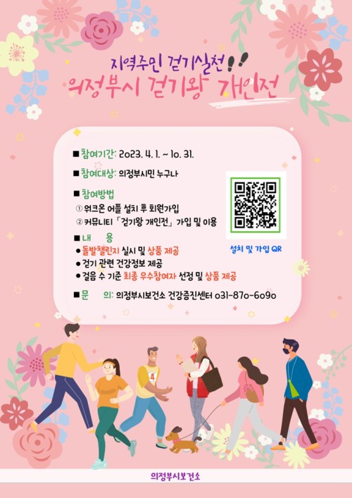 Âü¿© ¹æ¹ýÀº ½º¸¶Æ®Æù Ç÷¹À̽ºÅä¾î ¶Ç´Â ¾Û½ºÅä¾î¿¡¼ ‘¿öÅ©¿Â’¾Û ´Ù¿î·Îµå ¹× ȸ¿ø°¡ÀÔ → Áö¿ª¸í °Ë»ö¶õ¿¡ ‘ÀÇÁ¤ºÎ’ ¶Ç´Â ‘ÀÇÁ¤ºÎ½Ãº¸°Ç¼Ò’ °Ë»ö → °È±â¿Õ °³ÀÎÀü Ä¿¹Â´ÏƼ ¼±Åà → °¡ÀÔ ÈÄ ÀÌ¿ëÀÌ °¡´ÉÇÏ´Ù. ¾È³»¹®¿¡ ÀÖ´Â QRÄڵ带 ÀÌ¿ëÇØ ¼Õ½±°Ô Âü¿©ÇÒ ¼öµµ ÀÖ´Ù. ÀÚ¼¼ÇÑ »çÇ×Àº ÀÇÁ¤ºÎ½Ãº¸°Ç¼Ò ÅëÇհǰÁõÁø¼¾ÅÍ(031-870-6090)·Î ¹®ÀÇÇÏ¸é µÈ´Ù.