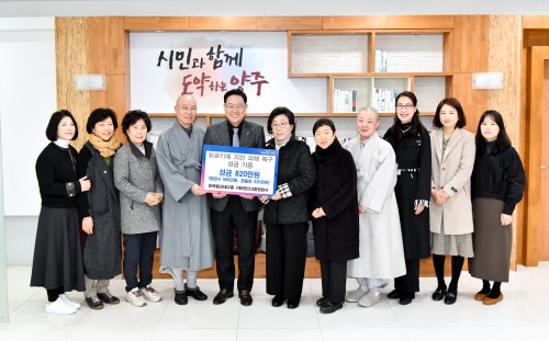 ¾çÁֽà û·Ã»ç(ÁÖÁö »óÁø ½º´Ô)¿Í °üÀ½È¸(û·Ã»ç ½ÅµµÈ¸)´Â Áö³ 17ÀÏ ½ÃûÀ» ¹æ¹®ÇØ Æ¢¸£Å°¿¹ ÁöÁø ÇÇÇØ º¹±¸ ¼º±Ý 820¸¸¿øÀ» ±âÁõÇß´Ù.