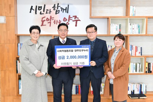 ¾çÁÖ½Ã(½ÃÀå °¼öÇö)´Â Áö³ 13ÀÏ »çȸÀûÇùµ¿Á¶ÇÕ ¾çÁÖµµ¿ì´©¸®(ÀÌ»çÀå ¸ÍµÎ¿)¿¡¼ ½ÃûÀ» ¹æ¹®ÇØ ¾çÁֽà Àå¾ÖÀÎ Àú¼ÒµæÃþÀ» À§ÇØ ½á´Þ¶ó¸ç ¼º±Ý 200¸¸¿øÀ» ±âºÎÇß´Ù°í ¹àÇû´Ù.