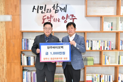 ¾çÁÖ½Ã(½ÃÀå °¼öÇö)´Â Áö³ 21ÀÏ ¾çÁÖ¹ÙÀÌ¿ÀÅ×Å©(´ëÇ¥ ¼ÛÀθ¸)¿¡¼ ½ÃûÀ» ¹æ¹®ÇØ ¾çÁֽà ÀÀ±Þ ÀÇ·á Áö¿øÀ» À§ÇØ ½á´Þ¶ó¸ç ¼º±Ý ÀÏõ¸¸¿øÀ» ±âºÎÇß´Ù°í ¹àÇû´Ù.