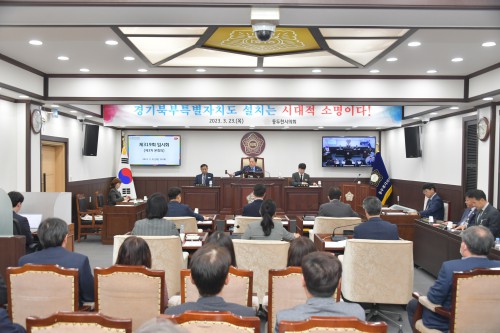 µ¿µÎõ½ÃÀÇȸ´Â º»È¸ÀÇ¿¡¼ '°æ±âµµ ºÏºÎ±Ç ½ÃÀ屺¼öÇùÀÇȸ ±Ô¾à º¸°í¾È', 'µ¿µÎõ½Ã Àα¸Áõ°¡½ÃÃ¥ Áö¿ø Á¶·Ê¾È' µî 18°ÇÀÇ ¾È°ÇÀ» ¿ø¾È°¡°áÇß´Ù. ¶ÇÇÑ 'µ¿µÎõ½Ã ¹Ì±ºÀç¹èÄ¡ °ü·Ã Ȱµ¿ Áö¿øÁ¶·Ê ÀüºÎ °³Á¤Á¶·Ê¾È', 'µ¿µÎõ½Ã µµ½Ã°èȹ Á¶·Ê ÀϺΠ°³Á¤Á¶·Ê¾È' °ÇÀ» ¼öÁ¤¾ÈÀ¸·Î °¡°áÇßÀ¸¸ç, '°æ±âºÏºÎƯº°ÀÚÄ¡µµ ¼³Ä¡ Ã˱¸ °áÀǹ® äÅÃÀÇ °Ç'À» ¸¸ÀåÀÏÄ¡·Î äÅÃÇß´Ù.