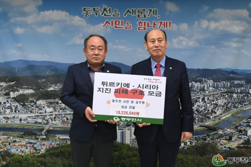 ¹ÚÇü´ö µ¿µÎõ½ÃÀåÀº “¼º±ÝÀ» ±âºÎÇØÁֽе¿µÎõ ½Ã¹Î, »çȸ´Üü ¹× Á÷¿øºÐµé¿¡°Ô °¨»çµå¸°´Ù”¸ç, “µ¿µÎõ½Ã°¡ ¸ð±ÝÇÑ ¼º±ÝÀÌ ÁöÁøÀ¸·Î ÇÇÇØ¸¦ ÀÔÀº‘ÇüÁ¦ÀÇ ³ª¶ó’ Æ¢¸£Å°¿¹¿Í ½Ã¸®¾Æ ±¹¹ÎµéÀÇ ÀÏ»óÀ» ȸº¹ÇÏ´Â µ¥ µµ¿òÀÌ µÇ±æ ¹Ù¶õ´Ù”¶ó°í ¸»Çß´Ù.