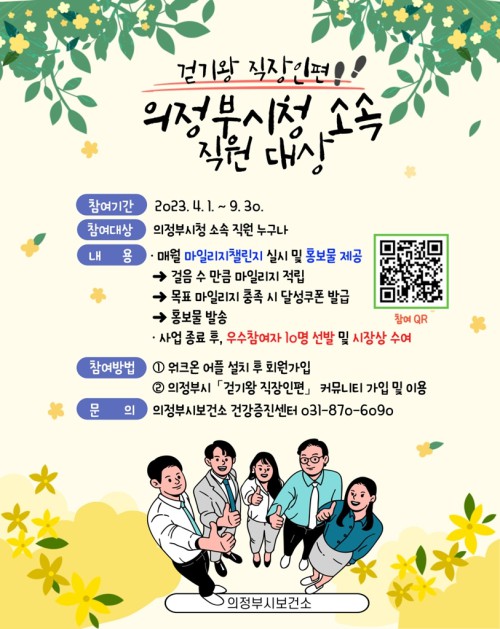 ÀÇÁ¤ºÎ½Ã(½ÃÀå ±èµ¿±Ù) º¸°Ç¼Ò(¼ÒÀå À忬±¹)´Â ÀÇÁ¤ºÎ½Ãû ¼Ò¼Ó Á÷¿øÀ» ´ë»óÀ¸·Î 4¿ù 1ÀϺÎÅÍ 9¿ù 30ÀϱîÁö ºñ´ë¸é °È±â »ç¾÷ÀÎ ‘2023 °È±â¿Õ Á÷ÀåÀÎÆí(ÀÇÁ¤ºÎ½Ãû ¼Ò¼Ó Á÷¿ø ´ë»ó)’À» ½Ç½ÃÇÑ´Ù.