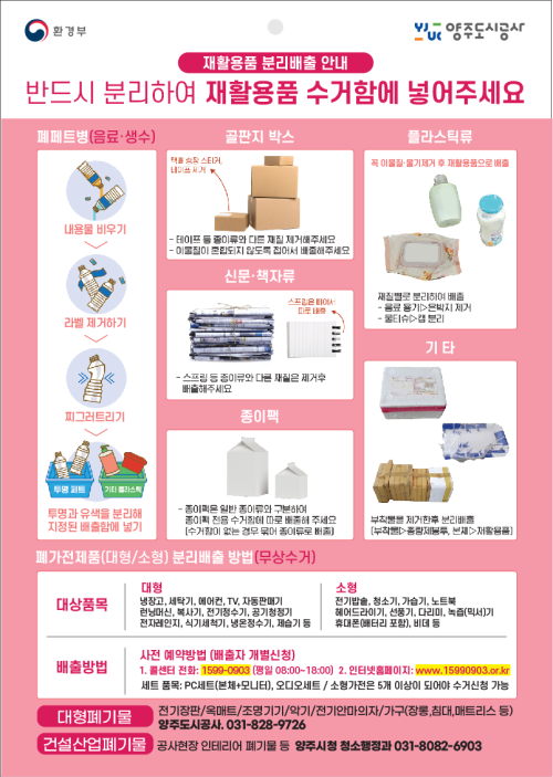 ¾çÁÖµµ½Ã°ø»ç(»çÀå ÀÌÈï±Ô)´Â ÀçȰ¿ëºÐ¸®¼ö°Å ¹èÃâ ½Çõ¹ýÀ» ½Ã¹ÎµéÀÌ ½±°Ô ÀÌÇØÇÒ ¼ö ÀÖµµ·Ï ¿µ»ó ÀڷḦ ÅëÇØ È«º¸ÇÑ´Ù°í ¹àÇû´Ù.