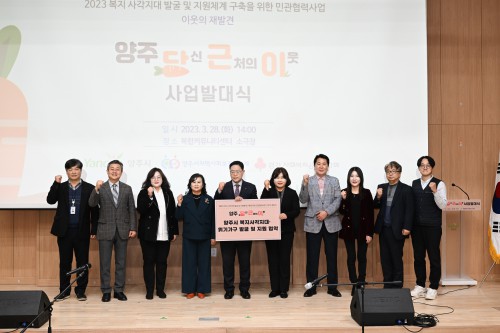 ¾çÁÖ½ÃÁö¿ª»çȸº¸ÀåÇùÀÇü(°øµ¿À§¿øÀå °¼öÇö, äÁ¤¼±)´Â Áö³ 28ÀÏ º¹ÇÕÄ¿¹Â´ÏƼ¼¾ÅÍ ¼Ò±ØÀå¿¡¼ º¹Áö»ç°¢Áö´ë ¹ß±¼°ú Áö¿øÃ¼°è ±¸ÃàÀ» À§ÇÑ ¹Î°üÇù·Â»ç¾÷ ‘ÀÌ¿ôÀÇ Àç¹ß°ß:¾çÁÖ´ç±ÙÀÌ(´ç½Å ±ÙóÀÇ ÀÌ¿ô)’ ¹ß´ë½Ä ¹× ¾÷¹«Çù¾à½ÄÀ» °³ÃÖÇß´Ù.