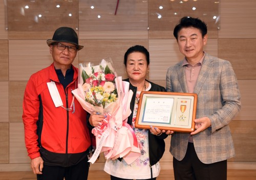 ÇÑÆí À̳¯ ½Ã»ó½Ä¿¡´Â ¸ð¹ü ½Ã¹Î°ú ÀÚ¶û½º·¯¿î °ø¹«¿ø µî 13¸íÀÌ ±èµ¿±Ù ÀÇÁ¤ºÎ½ÃÀå¿¡°Ô »óÀå ¹× Ç¥Ã¢ÀåÀ» ¹Þ¾Ò´Ù.